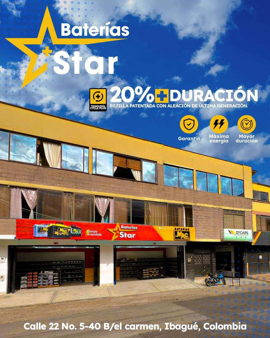 ¿Te quedaste sin batería en Ibagué? En BATERIAS STAR S.A.S somos expertos en energía automotriz con más de 27 años de experiencia. Ubicados estratégicamente en la Cl 22 #5-44, ofrecemos un catálogo completo de baterías para carros, motos y camiones de las mejores marcas (MAC, Bosch, Varta y más). Nos destacamos por nuestro servicio técnico especializado, revisión de sistema eléctrico y garantía real. Entendemos la urgencia de nuestros clientes, por eso brindamos una atención ágil y profesional en el centro de Ibagué (Tolima). Visítanos y asegura el arranque de tu vehículo con los mejores precios del mercado. ¡Tu confianza es nuestra energía!